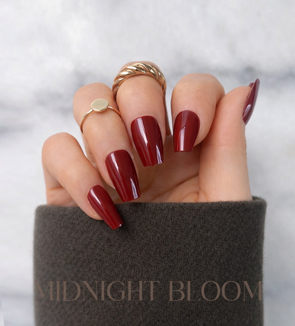 En djup burgundy med en hint av plommonröd värme, mörk, elegant och förtrollande. Midnight Bloom är färgen av sammetsmörker och röda rosor i månsken. Den utstrålar diskret lyx och mystik, perfekt för vintersäsongens mest eleganta stunder.