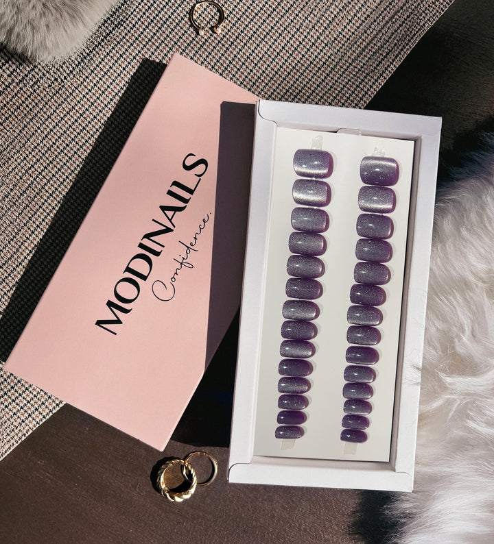 En färg som påminner om den sista lila glimten av himlen när solen gått ner. Twilight är mjuk, elegant och kraftfull på samma gång. Den glittrande effekten adderar djup och dimension, medan den korta formen håller allt balanserat och stilrent.