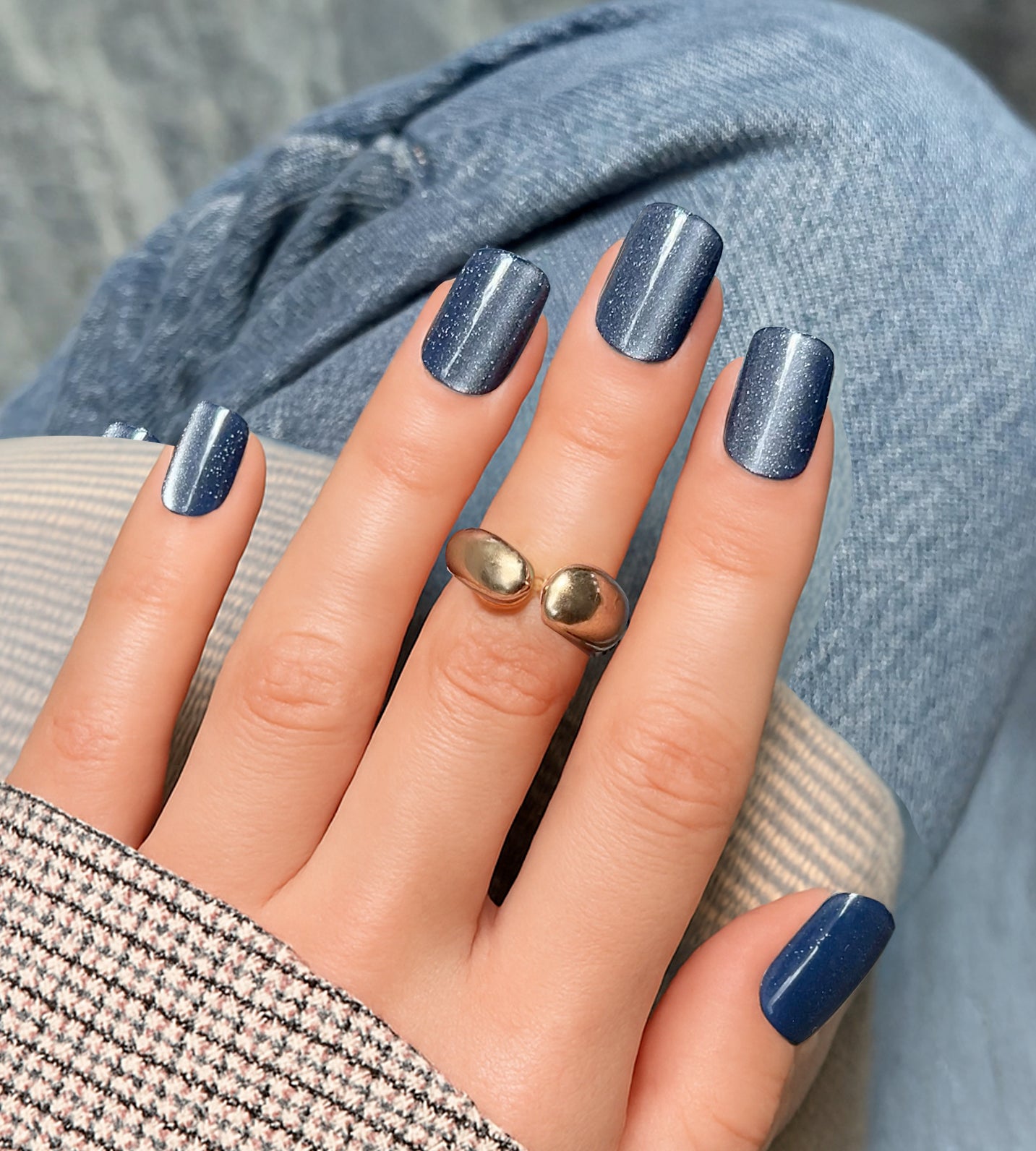 En kold, men elegant blå tone, der skifter som måneskin mod sne. Perfekt til dem, der ønsker at udstråle selvtillid med en sofistikeret glans.