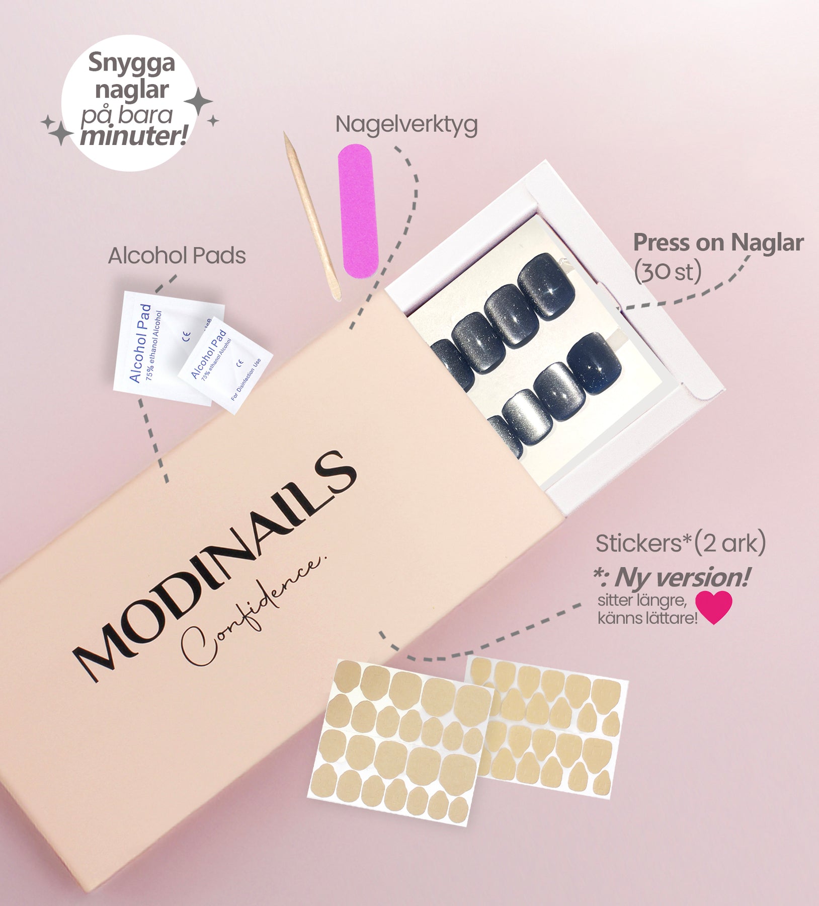 Med ModiNails kan du få dine drømmenegle på bare få minutter! Vores nemme applikation sparer dig tid uden at gå på kompromis med kvaliteten.
